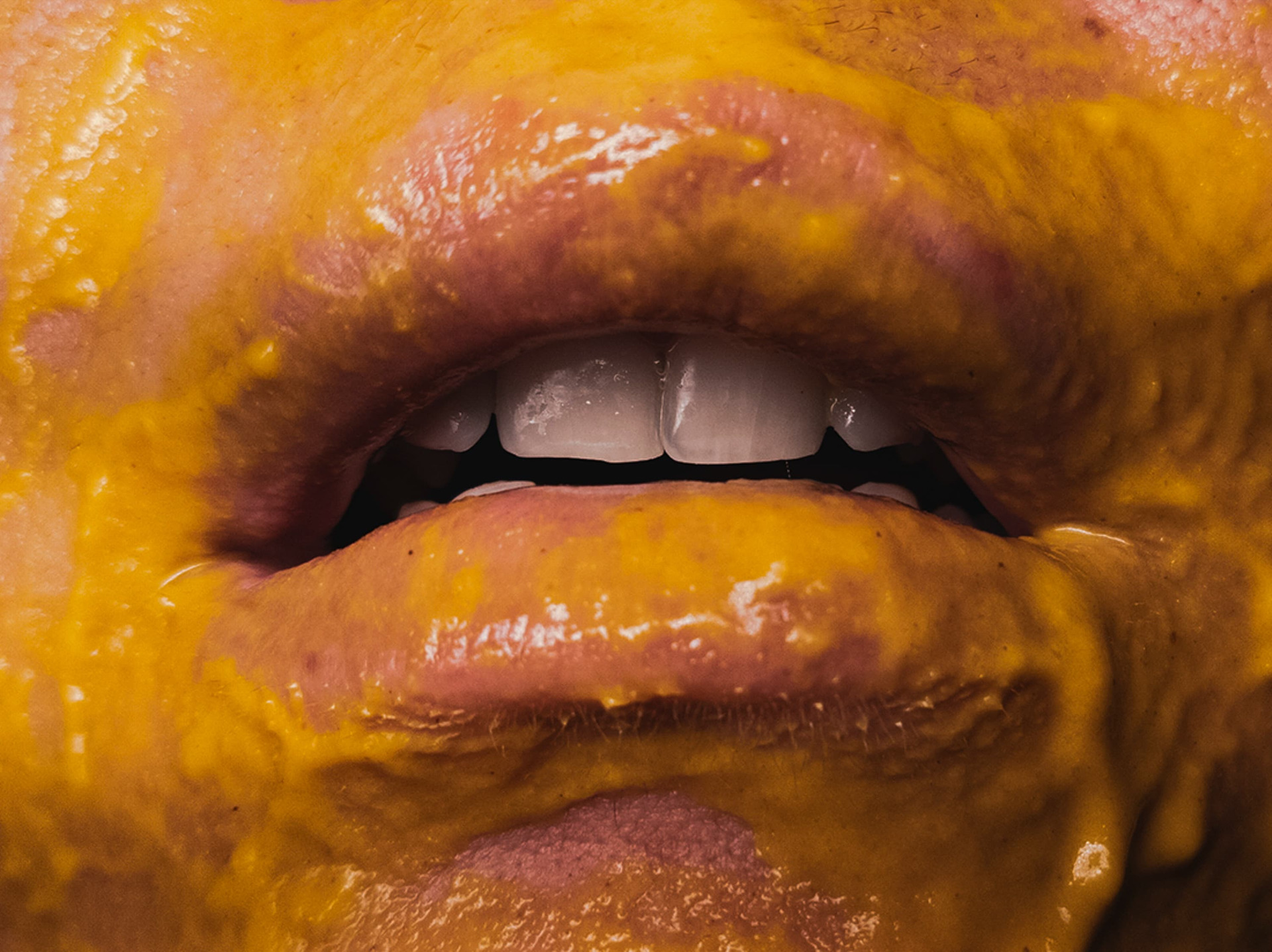 Sussurro é uma série fotográfica desenvolvida durante o período da pandemia, quando a boca, lugar da fala, do contato e da respiração, tornou-se também espaço de contenção, risco e silêncio. Por meio de closes de bocas em diferentes estados, texturas e materialidades, a artista investiga a boca como superfície sensível, atravessada por camadas que oscilam entre o orgânico, o viscoso e o opaco.